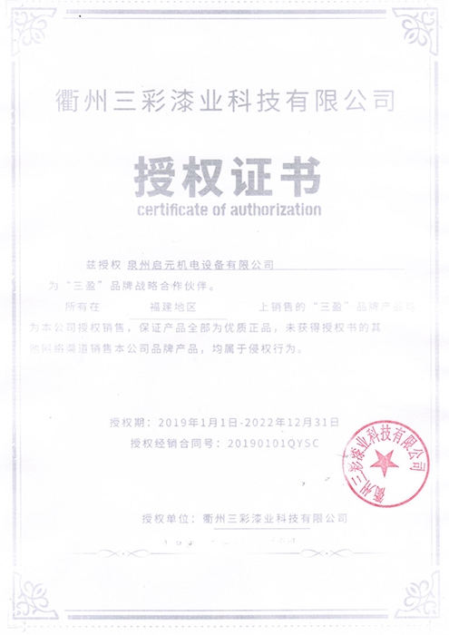 衢州三彩授權(quán)證書