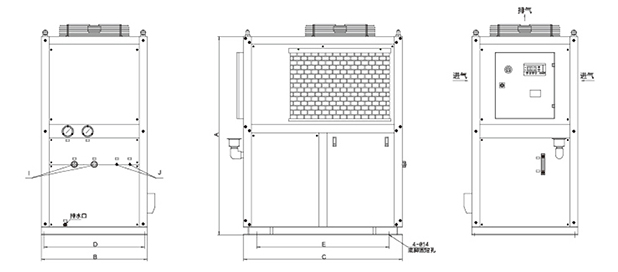 2.冷水機(jī)安裝時(shí),進(jìn)風(fēng)口需預(yù)留≮ 80cm的空間,出風(fēng)口預(yù)留≮200cm的空間;
